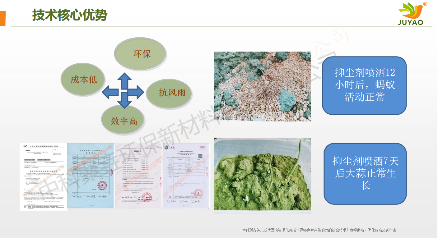 生化污泥减量技术 土体水稳定法技术 固废资源化利用 扬尘治理 核心产品